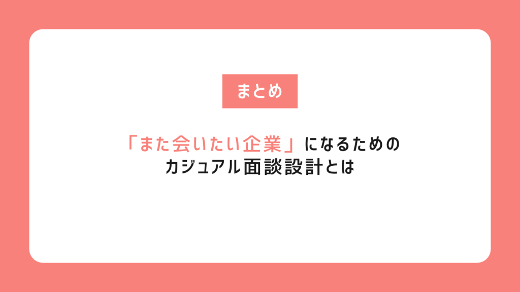 この段階でのカジュアル面談は、意思決定を後押しし、“入社後のギャップ”を防ぐための重要な施策となります。