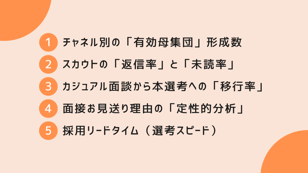 RPOとの連携を成功させるためには、定例会で共通言語となる指標を持つことが重要です。ここでは、RPO会社のKPIとして絶対に外せない5つのポイントを詳しく解説します。