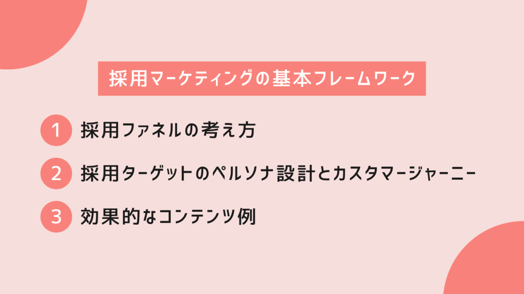 この章では、採用マーケティングを構造的に実践していくために必要な基本フレームワークについて、順を追って解説していきます。