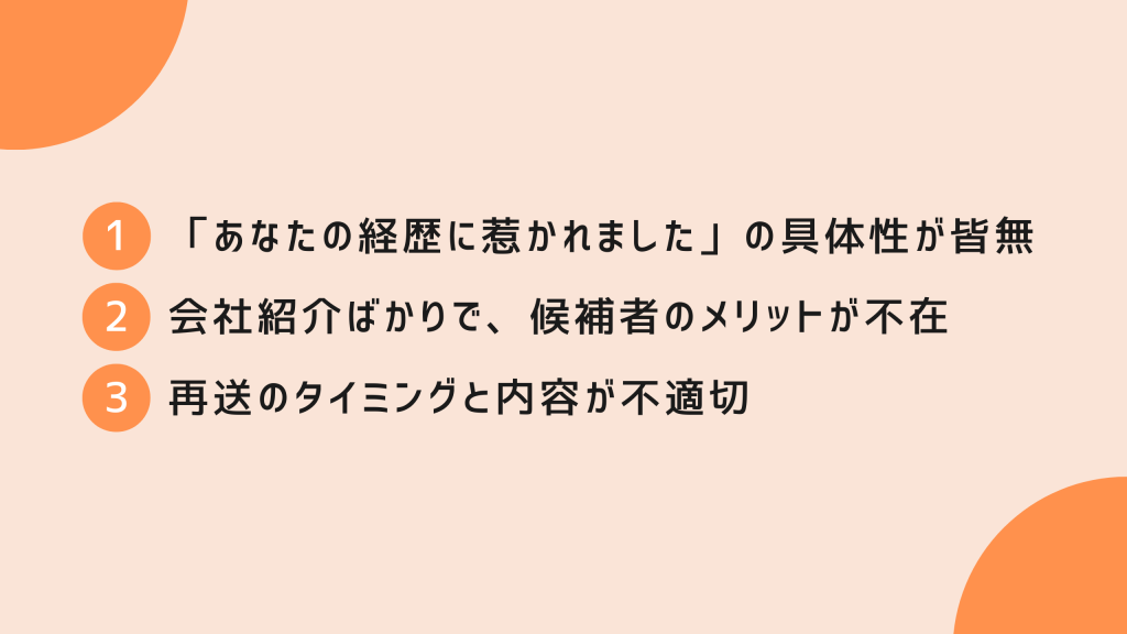 【NG3】追い打ちスカウト(再送)のタイミングと内容が不適切