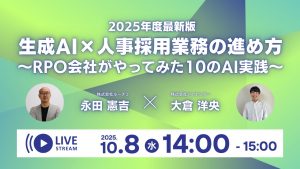 本セミナーは、採用業務に従事されている企業様向けの内容となっております。誠に恐れ入りますが、同業他社様(RPO・人材紹介・採用支援事業を運営されている企業様等)からのお申し込みはご遠慮いただいております。