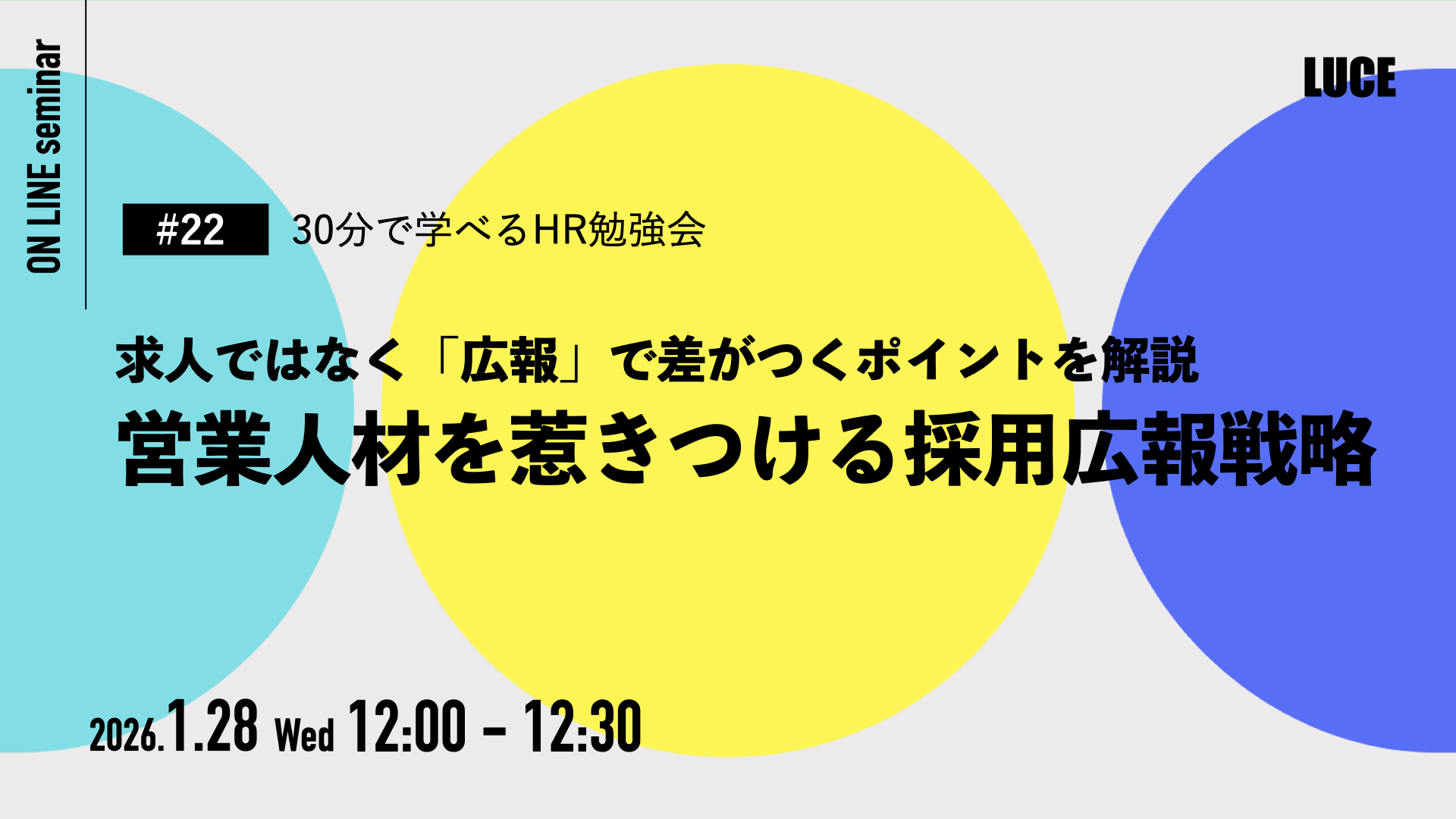 本セミナーは、採用業務に従事されている企業様向けの内容となっております。誠に恐れ入りますが、同業他社様(RPO・人材紹介・採用支援事業を運営されている企業様等)からのお申し込みはご遠慮いただいております。