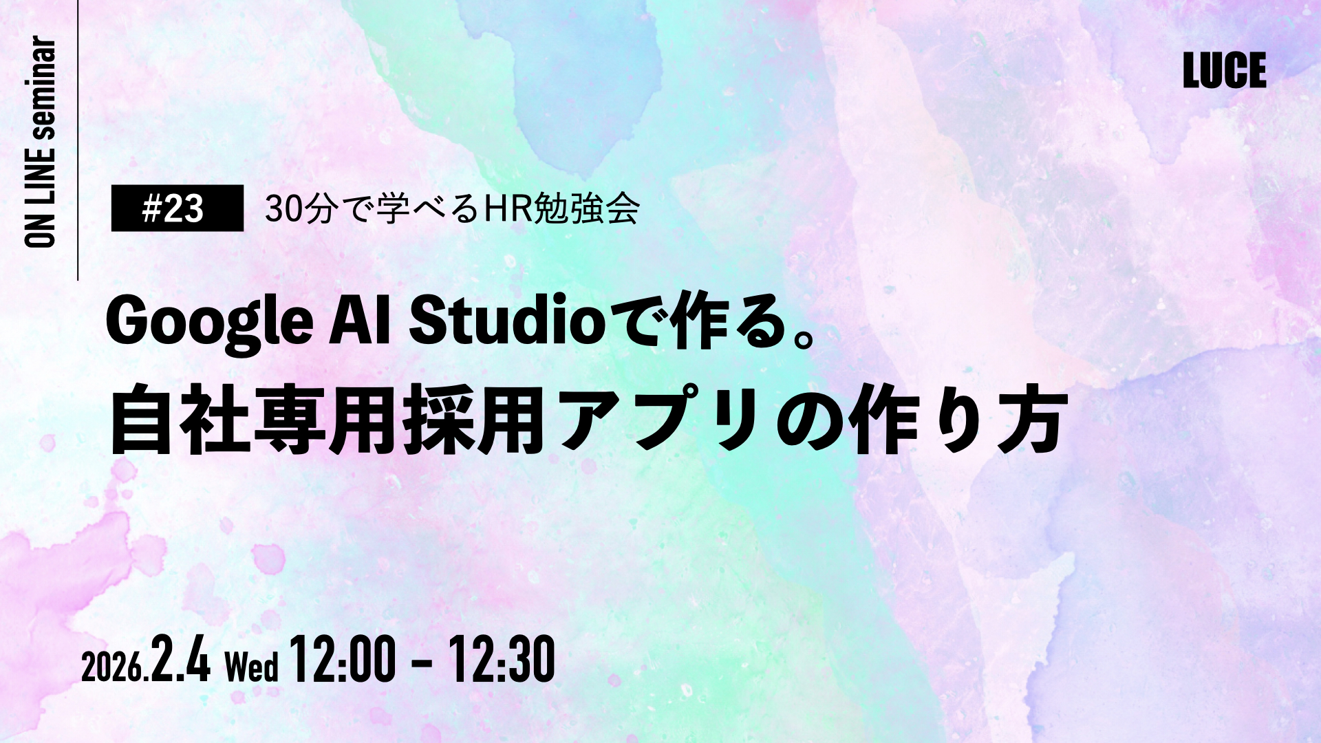 本セミナーでは、Google AI Studioを使って、自社の採用業務に合わせた「自社専用の採用アプリ(AIアシスタント)」を作る方法を、実演ベースで分かりやすく解説します。