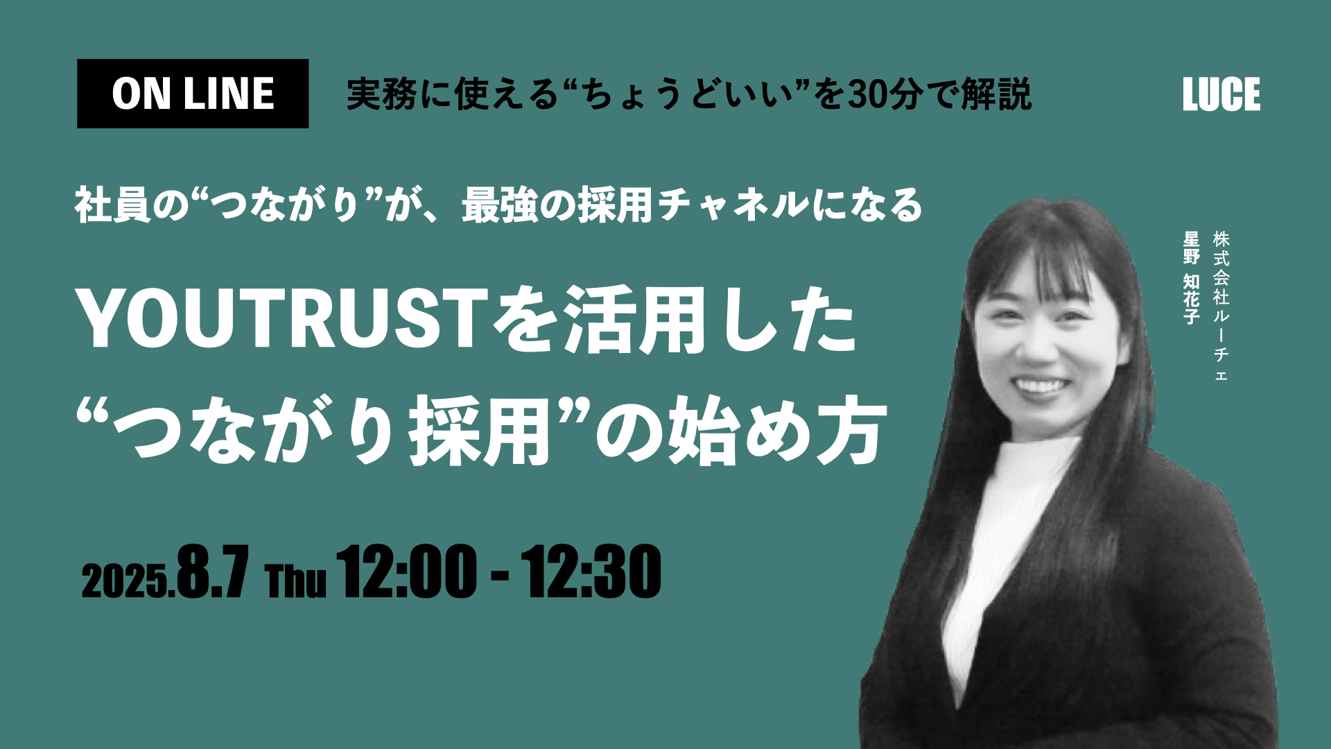 このセミナーでは、媒体頼みの採用に限界を感じている企業様に向けて、YOUTRUSTを活用した“つながり採用”の基本と、成果を出している企業の共通点、明日からできる運用ステップをご紹介します。